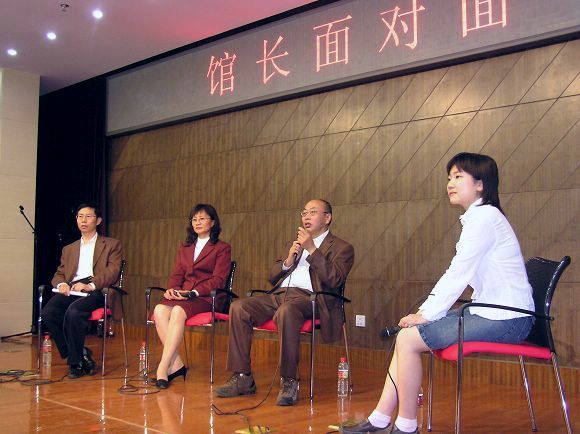 5月10日下午, 圖書館一層報告廳人頭攢動,熱鬧非凡。隨著“館長面對面”和“有獎問答頒獎儀式”的開始,圖書館宣傳月活動進入了尾聲。“館長面對面”采用主持人訪談和觀眾提問結合的形式,開辟了圖書館與讀者間溝通與交流的渠道。曹樹人館長、馬宏偉書記和時春山副館長分別介紹了圖書館新館以人為本的設計理念,完善的資源配置和不斷提高的館藏資源建設,并抒發了各自對圖書館未來發展的希望。