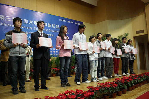 天高云淡,金風(fēng)送爽,2010年9月25日,由教育部高等教育司舉辦的第三屆全國(guó)大學(xué)生創(chuàng)新論壇在美麗的海濱城市大連隆重舉行。從全國(guó)120所高校的6000項(xiàng)"國(guó)家大學(xué)生創(chuàng)新性實(shí)驗(yàn)計(jì)劃"項(xiàng)目中精選出的90余項(xiàng)優(yōu)秀作品參加了展示,這是項(xiàng)目科技含量和學(xué)術(shù)水平的同臺(tái)競(jìng)技,也是參展學(xué)校展示學(xué)風(fēng)、校風(fēng)的最佳舞臺(tái)。
