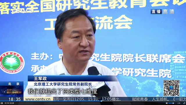 王軍政在《全國教育新聞聯播》上介紹學校本碩博一體化拔尖創新人才培養體系