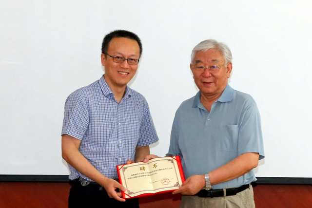 龍騰代表學校向天津大學蘇萬華院士頒發學術委員會主任委員聘書、向上海交通大學副校長黃震教授頒發學術委員會副主任聘書 、向兵器集團首席科學家中國北方發動機研究所王增全研高工頒發學術委員會副主任聘書。