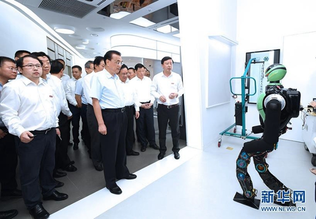 7月23日,北京理工大學(xué)研制的仿人機器人在上海張江人工智能島自主智能無人系統(tǒng)科學(xué)中心參展,向中共中央政治局常委、國務(wù)院總理李克強等領(lǐng)導(dǎo)進(jìn)行匯報展示,得到各級領(lǐng)導(dǎo)好評。