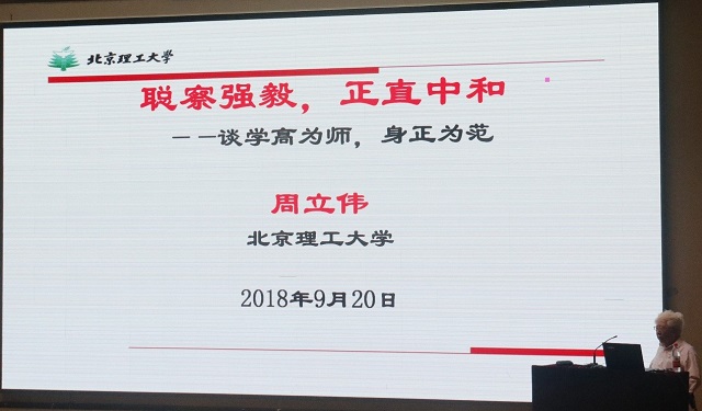 周立偉院士著重結(jié)合自己在北理工學(xué)習(xí)工作65年的奮斗經(jīng)歷,以身師范分享交流怎樣做一名好老師,如何堅(jiān)定信念成才報(bào)國。