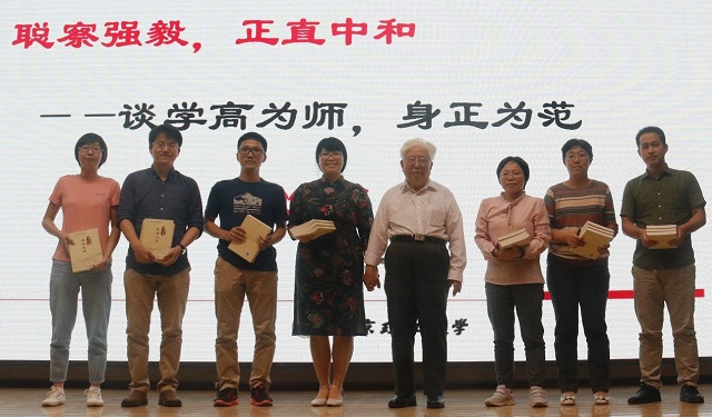 在近三個(gè)小時(shí)的報(bào)告中,周立偉院士從“探索之路,艱辛曲折”“大愛育人,為人師表”“潛心學(xué)術(shù),篤學(xué)誠行”“敢于質(zhì)疑,大膽懷疑”“敢于創(chuàng)造,為天下先”“恒心毅力,鑄造成就”六個(gè)方面闡述自己的思想和感悟,并與學(xué)院師生進(jìn)行了親切的交流。報(bào)告思想深邃,內(nèi)容豐富,非常給人以鼓舞和啟迪。