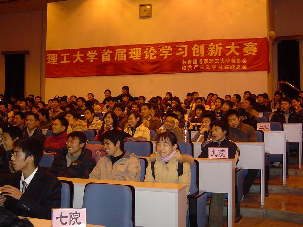 2005年12月12日晚七點,北京理工大學首屆理論學習創新大賽頒獎晚會在七號樓報告廳隆重舉行。理學院馬列主義學習會榮獲本次大賽一等獎。