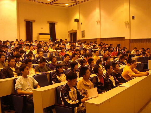 2006年10月13日(周五)晚6:30,理學院黨委書記何明老師在七號樓報告廳給全院2006級新生講授了第一次黨課。