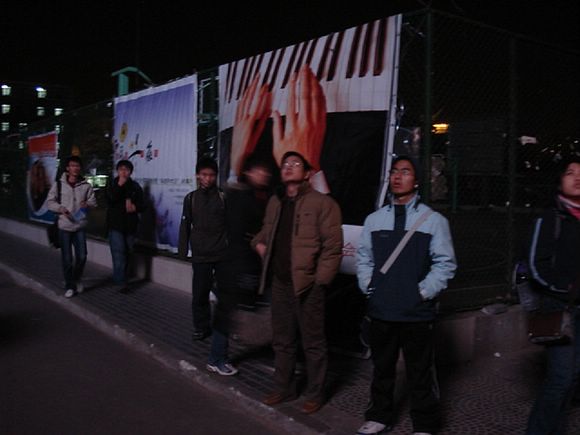 除了通過知識競猜的方式宣傳西安事變,活動工作人員還聯系了校信息樓大屏幕管理人員。12日當日晚上6時許,信息樓大屏幕上播放了有關紀念西安事變七十周年的紀錄片和工作人員在學校內的采訪錄像。大屏幕上播放的內容立刻引起了路過同學的注意,同學們紛紛駐足觀看,并且交流對西安事變認識和理解。