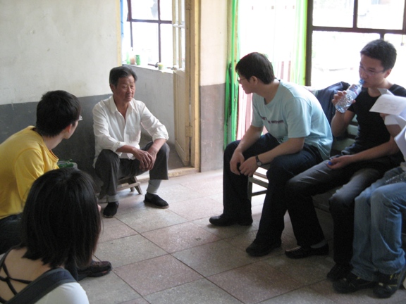 在“村官”周航同學的帶領下,黨支部成員首先參觀齊家務村的新農村建設情況,黨員們通過自身感受,深刻的理解了新農村建設的巨大成就和深遠意義,黨支部自費印制了有關奧運和抗震相關知識的簡明手冊,向村民們發放宣傳,并做了有關奧運和抗震的問卷調查活動。