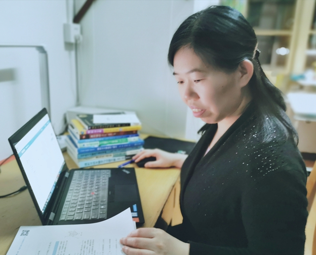 閆曉霞在家中緊張備課